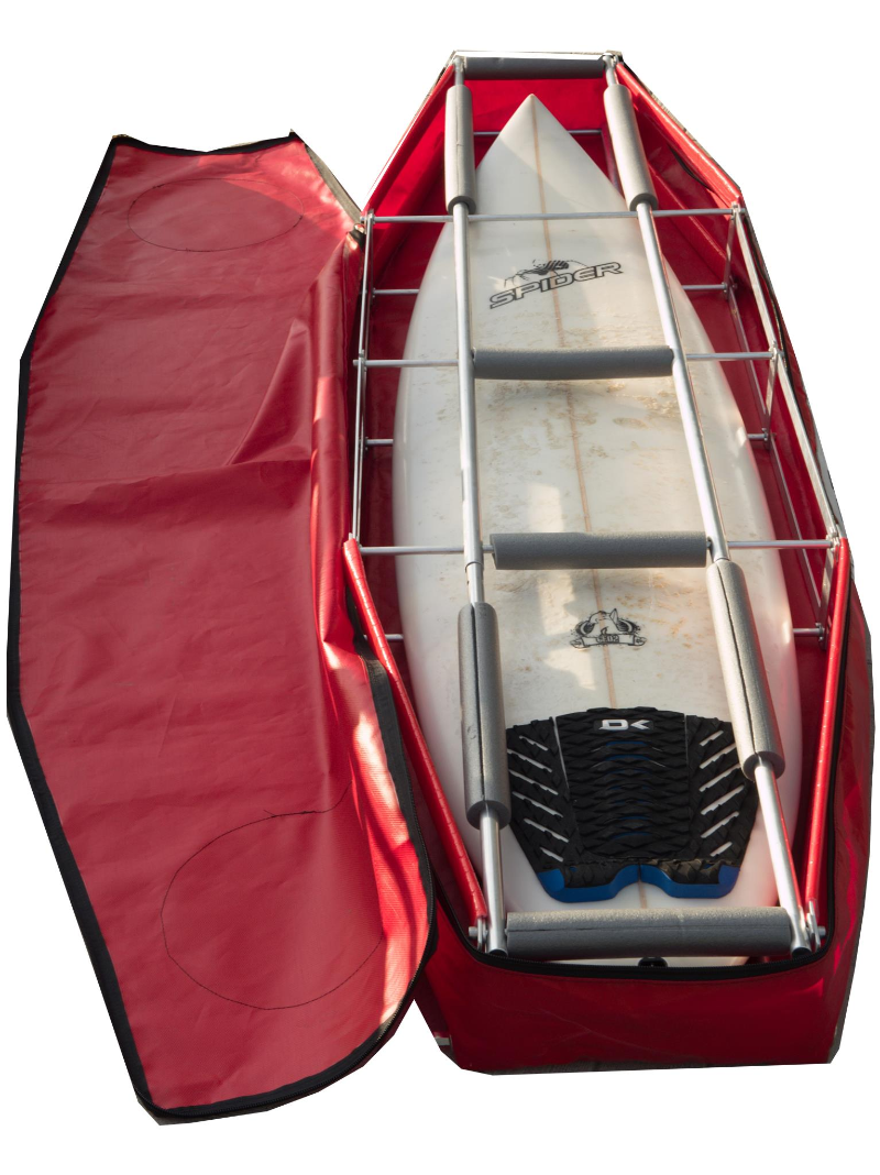 Hardcore Division has been hard at work with the inception of their revolutionary new product, the Board BONES. The Board BONES is a fully protective, multi-functional surfboard and stand-up paddleboard coffin. Aimed at the travelling surfer, it makes for seamless board transportation and protection, wherever you may be in the world.
